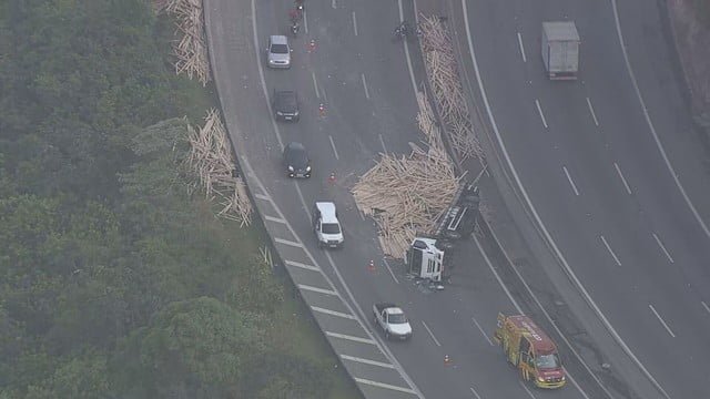 O acidente ocorreu por volta das 6h. A via chegou a ficar totalmente bloqueada. Por volta das 7h50, duas faixas tinham sido liberadas.