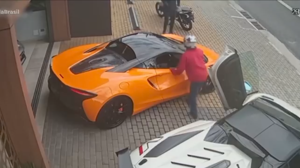 Assalto relâmpago em concessionária de carros de luxo em Osasco durou menos de 30 segundos. Polícia analisa imagens para identificar suspeitos.