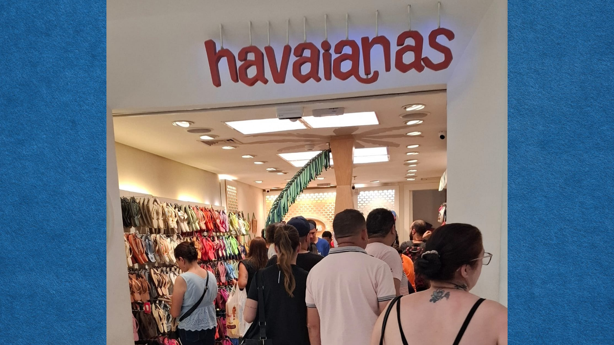Mesmo após polêmica política envolvendo campanha com Fernanda Torres, loja da Havaianas fica lotada no Shopping União de Osasco na véspera de Natal.