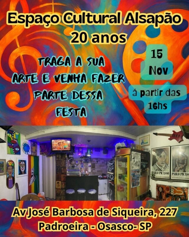 E a festa não para por aí: no dia 15 de novembro, o Espaço Cultural AlSapão, abre suas portas para celebrar seu 20º aniversário, com música, amigos e aquela energia que transformou o espaço em símbolo de cultura viva e autêntica.