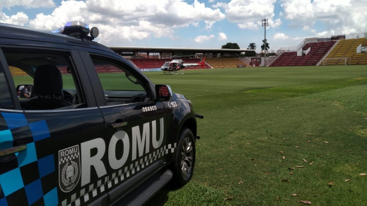 O helicóptero pousou no gramado do Estádio Municipal José Liberatti, o Rochdalão, em Osasco, onde uma ambulância com a equipe médica já aguardava para entregar o órgão.