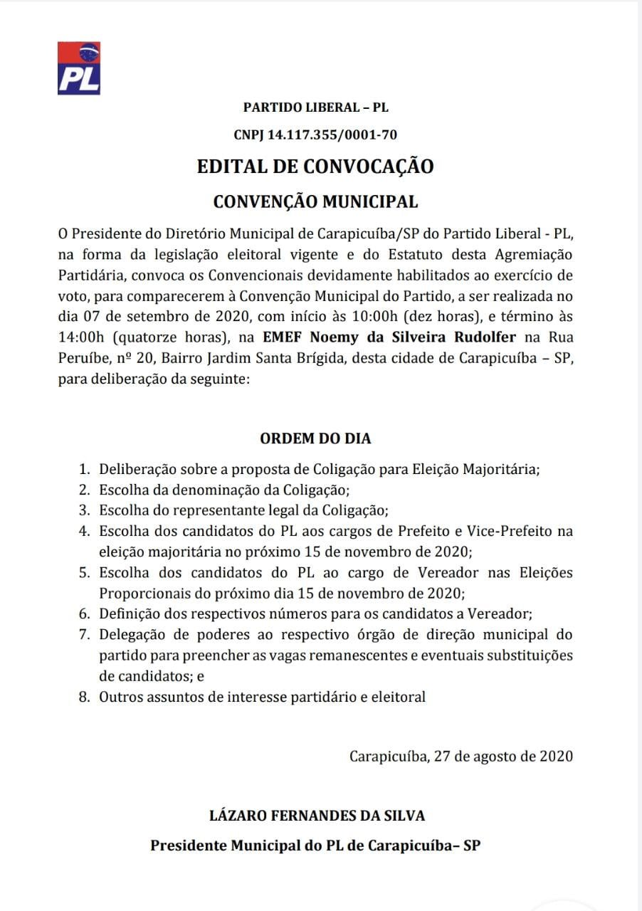 Edital de Convocação – PL Carapicuíba Geral 26 de agosto de 2020RedaçãoLeave a Comment on Edital de Convocação – PL Carapicuíba