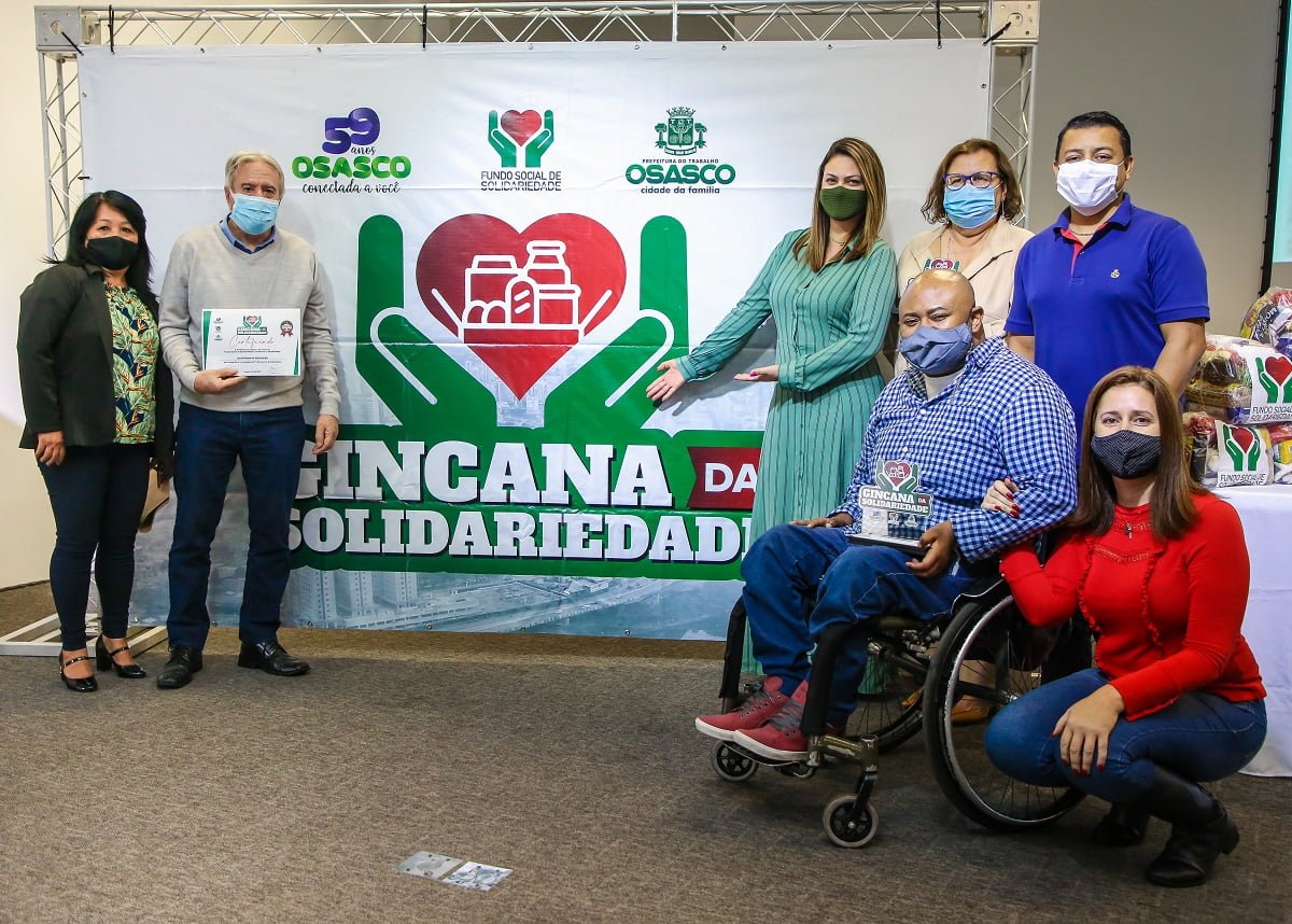 A Prefeitura de Osasco realizou sexta-feira, 7, a cerimônia simbólica de premiação das secretarias vencedoras da Gincana Solidária, organizada pelo Fundo Social de Solidariedade e pela Secretaria de Planejamento e Gestão, com a participação de 29 secretarias. O prefeito Rogério Lins e a primeira-dama e presidente do Fundo, Aline Lins, participaram do ato, na Sala Luiz Claudino (antiga Sala Osasco). Para manter o distanciamento social, em razão da pandemia, apenas representantes das pastas vencedoras participaram. Em 70 dias de gincana, iniciada em 29/2, foram arrecadadas 25 toneladas de alimentos.