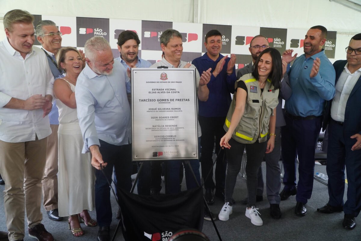 Na sequência, Tarcísio foi ao município de Vargem Grande Paulista para entregar as obras de modernização da estrada vicinal Elias Alves da Costa. O Departamento de Estradas de Rodagem (DER), vinculado à Secretaria de Meio Ambiente, Infraestrutura e Logística, investiu R$ 21,4 milhões em melhorias no trecho de quase 10 km entre Vargem Grande Paulista e Itapevi. A secretária Natália Resende também participou da entrega dos serviços.