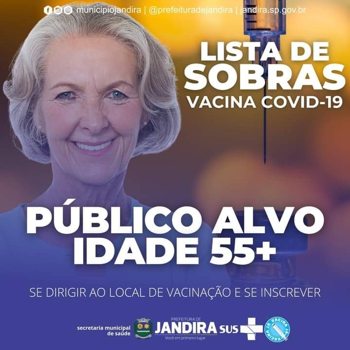 A partir desta terça-feira (08) estará aberta a inscrição para os maiores de 55 anos para participar da lista “xepa” da vacina contra a covid-19. O objetivo é evitar desperdício e vacinar o quanto antes nossa população.