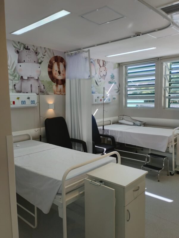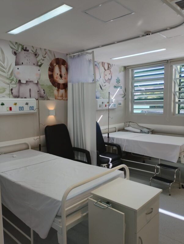 No sábado, 28 de março, a imprensa foi convidada a visitar a primeira ala com a reforma já concluída e lá estivemos. É um total de 14 apartamentos padronizados, com duas camas cada, ar condicionado, TV, amplo banheiro, enfim com toda a comodidade às mães e seus bebês. Numa ala com 12 quartos, próxima a receber esses benefícios, atualmente possuem 3 ou 4 camas cada, sem ar, nem TV e um banheiro minúsculo.