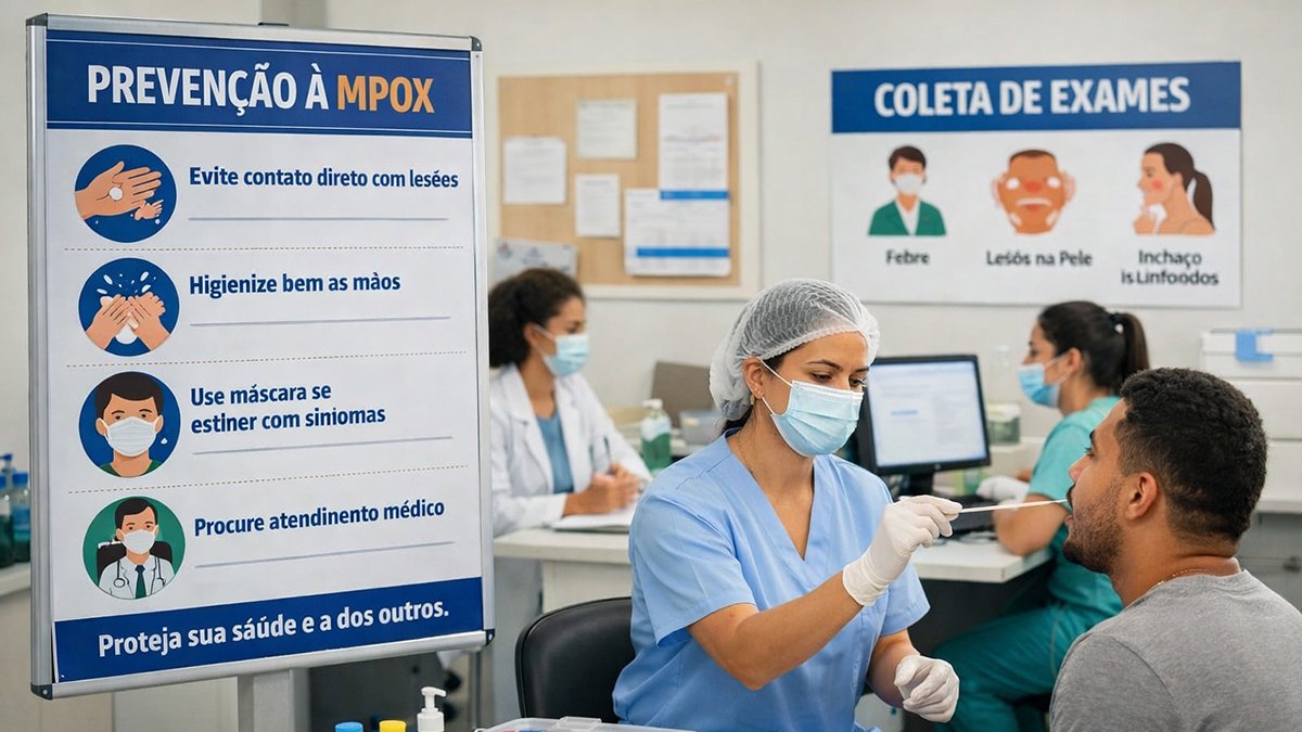 A mpox é uma doença infecciosa causada pelo vírus MPXV, pertencente ao gênero Orthopoxvirus. A transmissão ocorre principalmente por contato direto com lesões de pele, secreções ou objetos contaminados, além de contato íntimo e prolongado entre pessoas. Os sintomas mais frequentes incluem febre, mal-estar, aumento de linfonodos e lesões cutâneas, que podem ser dolorosas e durar de duas a quatro semanas.