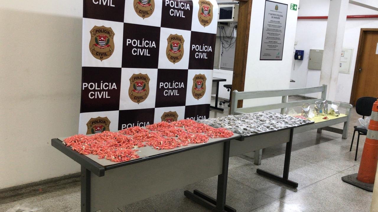 A Polícia Civil prendeu, na terça-feira (1º), dois rapazes, de 26 anos, que foram surpreendidos armazenando 3.260 porções de drogas em uma casa no Jardim Santa Mônica, em Barueri. Um veículo e outros materiais usados para o tráfico foram apreendidos.