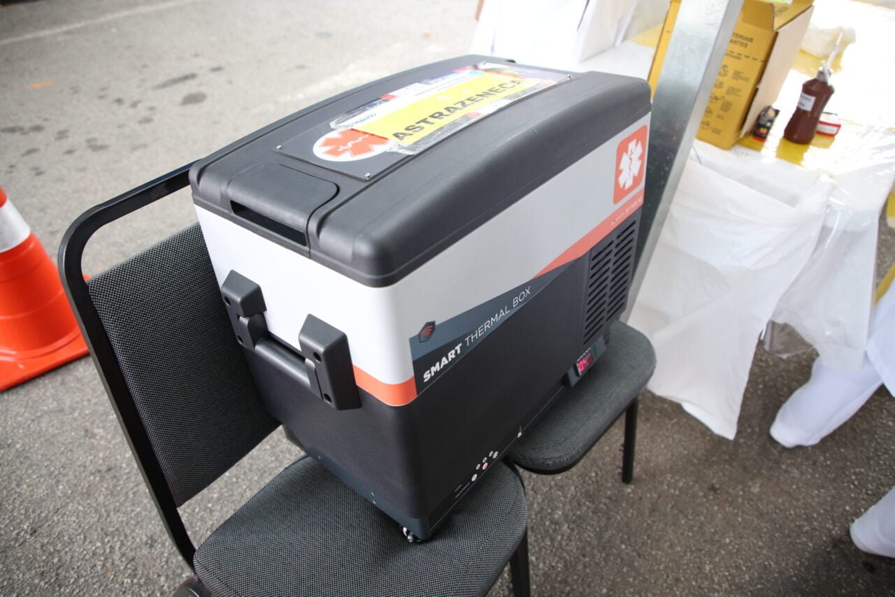 “É bem diferente das caixas tradicionais, com gelox, que duram em média 3h. A ideia é tornar a logística melhor para nossos enfermeiros. A cada aplicação é necessário abrir as caixas para pegar a vacina e com as caixas tradicionais o tempo de armazenamento é menor, sendo necessário renovar o gelox com mais frequência, e com o mini resfriador portátil o processo torna-se mais eficiente”, explicou Carmem Almeida, enfermeira responsável pela equipe de imunização do drive-thru.