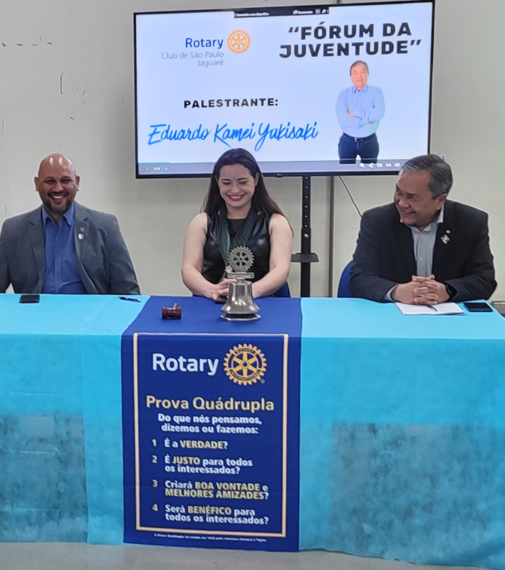 Realizou com maestria o “Fórum da Juventude” abordando o tema “do que nós pensamos, dizemos ou fazemos”. A mesa dos palestrantes foi abrilhantada pela presidente do Rotary Club/SP Jaguaré Miriâ Raquel Generosa Barbosa, presidente do Rotary Club/SP Pq Continental Rosberg Eustaquio Martins Silva e pelo palestrante Dr. Eduardo Kamei Yukisaki. A palestra engrandeceu o evento “Feirão Kids Jovens” que aconteceu nas dependências da “ETEC Dr. Celso Giglio” na Vila dos Remédios, em Osasco.