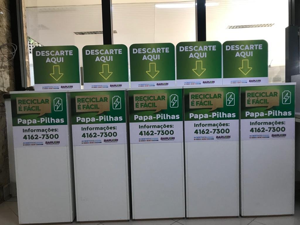 A Secretaria de Recursos Naturais e Meio Ambiente de Barueri (Sema) distribuiu cinco recipientes conhecidos como papa-pilhas em locais estratégicos da cidade para viabilizar o descarte responsável desse tipo de dispositivo. Os locais contemplados são os parques municipais Dom José (Vila Porto/Boa Vista), Ecológico (Alphaville) e Taddeo Almeida Cananéia da Silva (Pq. Imperial), Viveiro Municipal e Senai.