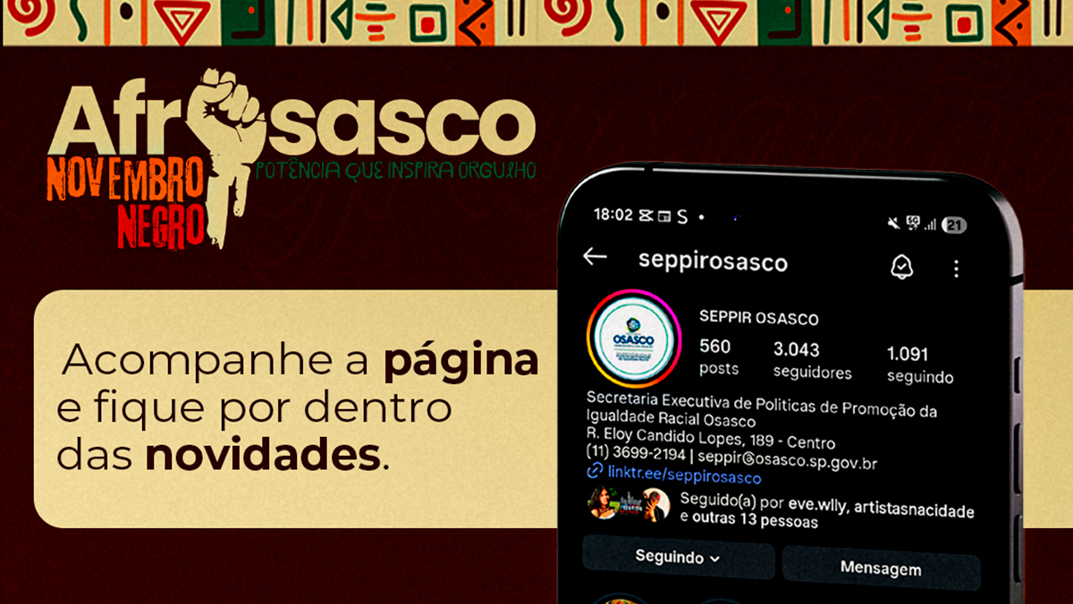 Osasco realiza a 21ª edição do Novembro Negro com palestras, exposição pedagógica e debates sobre identidade, cultura afro-brasileira e equidade racial na educação. Confira os destaques do evento.