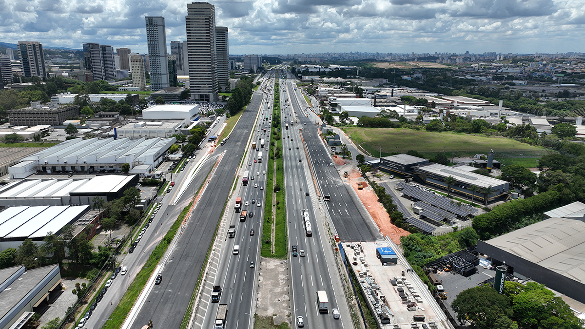 As obras das Pontes Guilherme de Almeida, em Barueri, avançam para 95% de conclusão, com melhorias em mobilidade urbana, segurança viária e infraestrutura das marginais da Rodovia Castello Branco (SP-280).