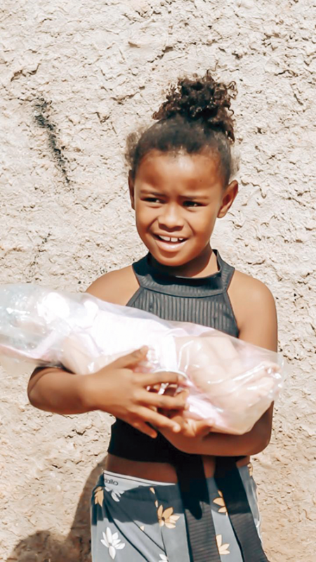 Mas tem criança cuja família vive em pobreza extrema, então o sonho nem é brinquedo mas comida para a casa. Pedido feito, logística em ação e cestas básicas chegam às mesas.