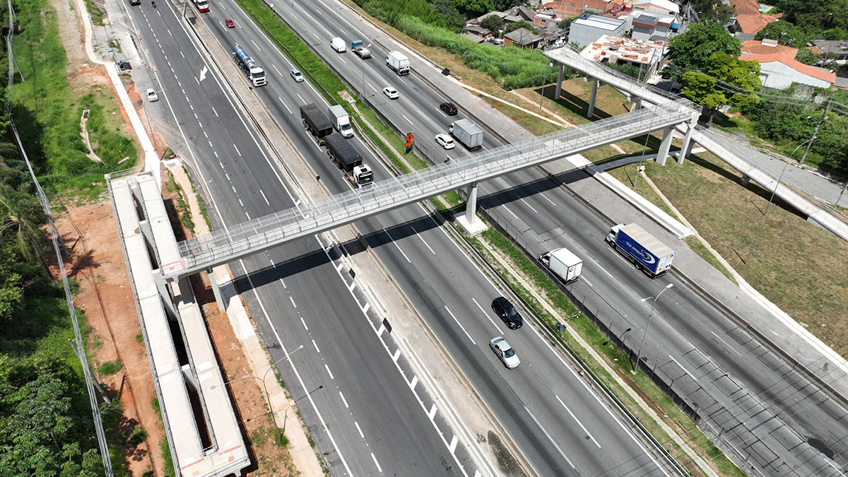 A concessionária ViaOeste liberou o acesso à nova passarela implantada no km 27 da Rodovia Castello Branco (SP-280), em Barueri, na Região Metropolitana de São Paulo. A estrutura beneficia diretamente moradores dos bairros Parque Santa Luzia e Jardim Regina Alice, proporcionando mais segurança e conforto para pedestres que precisam atravessar a rodovia diariamente.