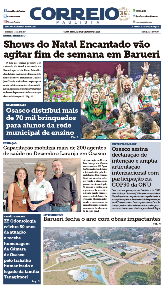 Manu Bahtidão, Xand Avião e Alexandre Pires são as atrações do fim de semana do Natal Encantado de Barueri 2025. Shows gratuitos no Ginásio José Corrêa.